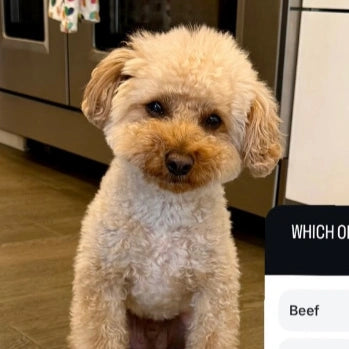 I would've guessed Beef but Chewie went for Chicken first! He licked both bowls clean! So happy to find new food that he likes as he's become a very picky eater!
